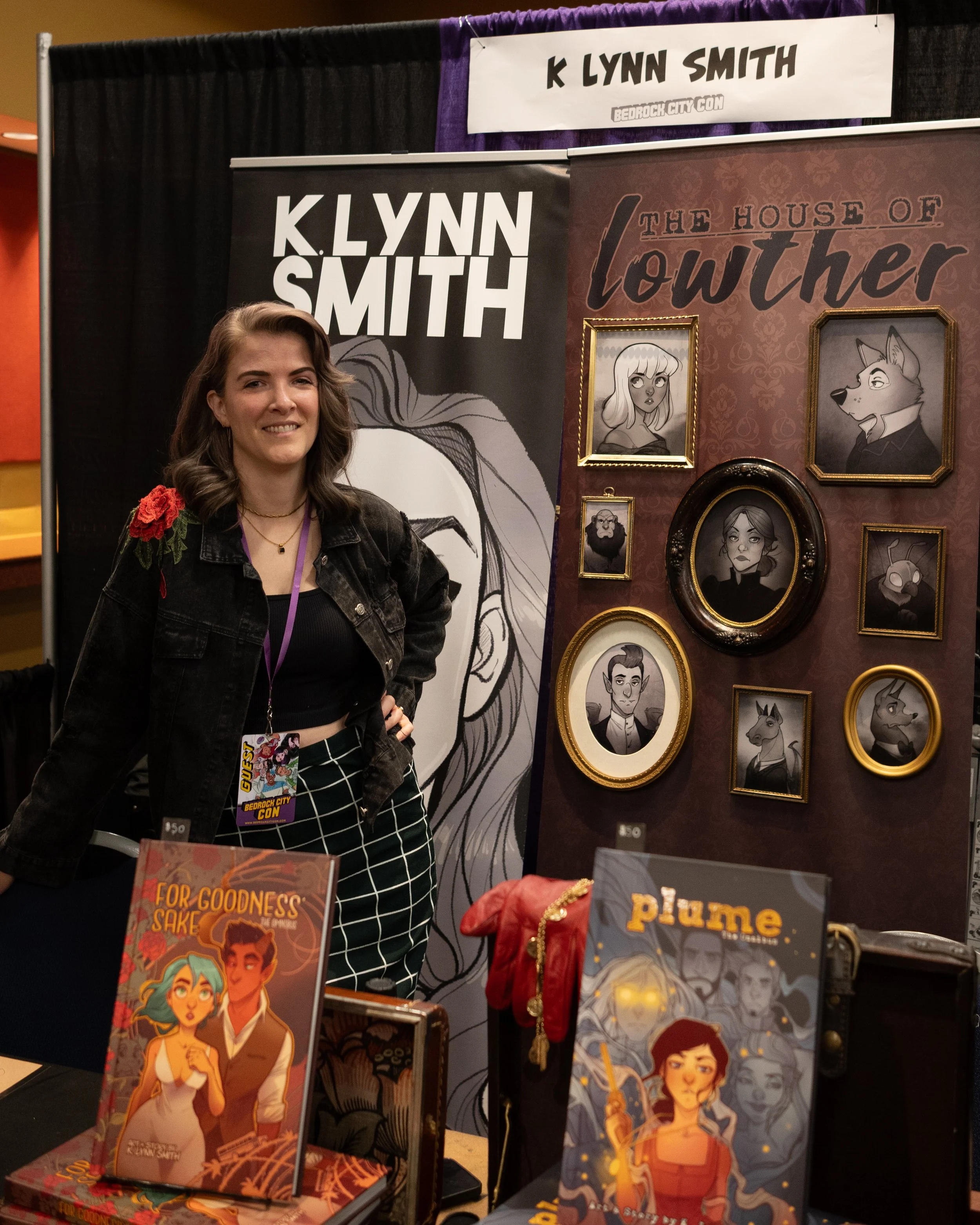 “I started as an animator and wrote/illustrated Plume myself to build a portfolio. But this happy accident started as a [western fantasy] webcomic that is now a collected edition people still enjoy years after it has been finished. I’ve since created For Goodness’ Sake and The House of Lowther, a series about cryptids. I’m basically living my Don Bluth dreams of drawing whatever I want.”