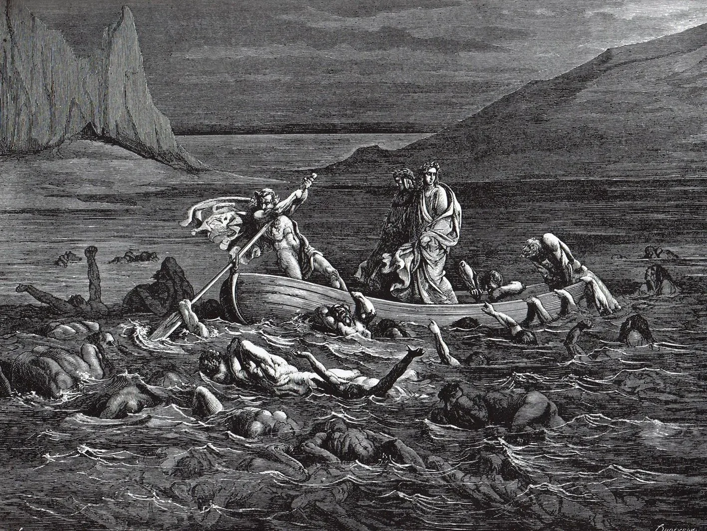 In the first issue, for example, there’s the scene at the river of souls, where I almost drew each soul emerging from the water one by one. For that, I was following a reference Stephanie had provided: an engraving by Gustave Doré. She wanted to evoke that particular vision of Hell found in Doré’s illustrations, which is also why my line was thinner and more intricate in those early pages. Obviously, my style is very different and I would never claim to be anywhere near that level, but I tried to capture a similar feeling.