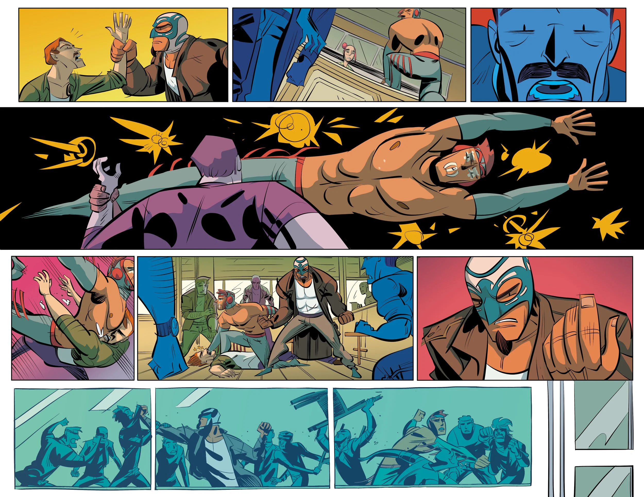 If it's the first time I'm working with a particular artist, I like to see how they've been colored before and look for overlaps in choices, as that displays something the artist potentially likes in terms of a color approach. Then I take what I learn from those and pair it with how I personally feel like I can highlight their particular artstyle in terms of a color and storytelling approach.